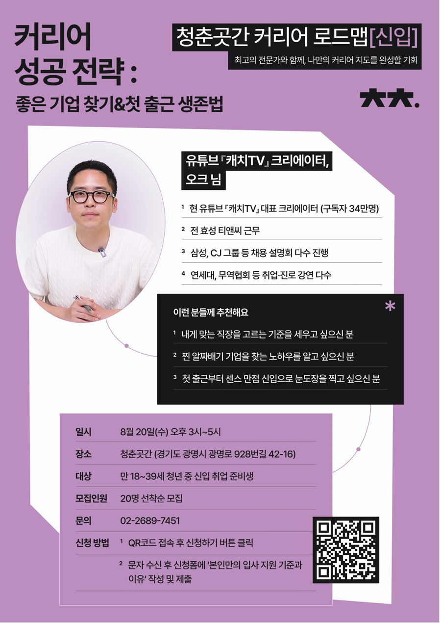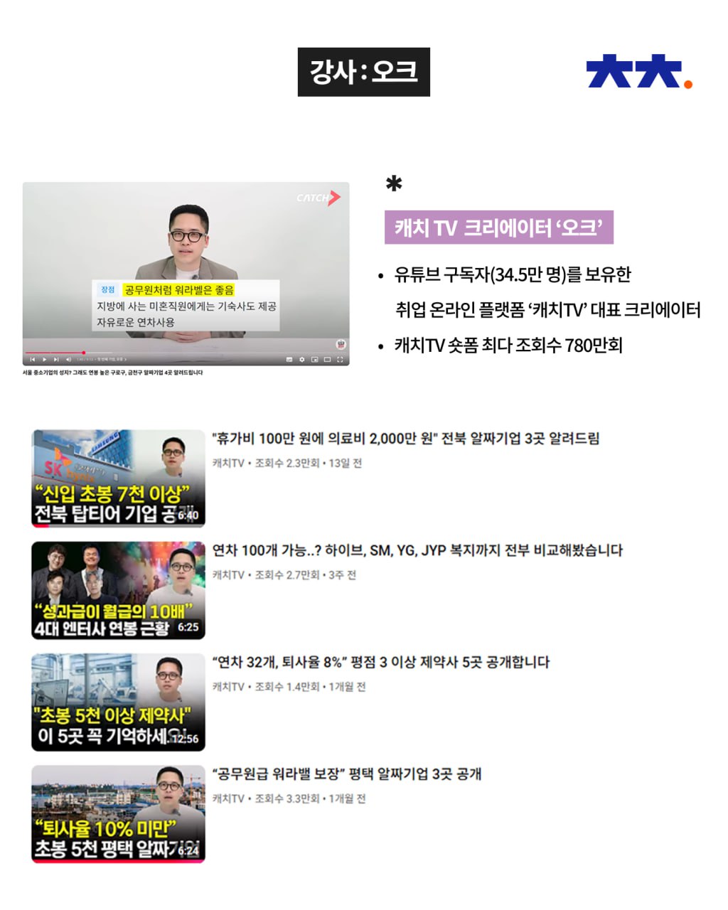 구독자 34.5만 명의 대한민국 대표 취업 채널 '캐치TV'의 대표 크리에이터 오크님이 직접 알려드립니다!