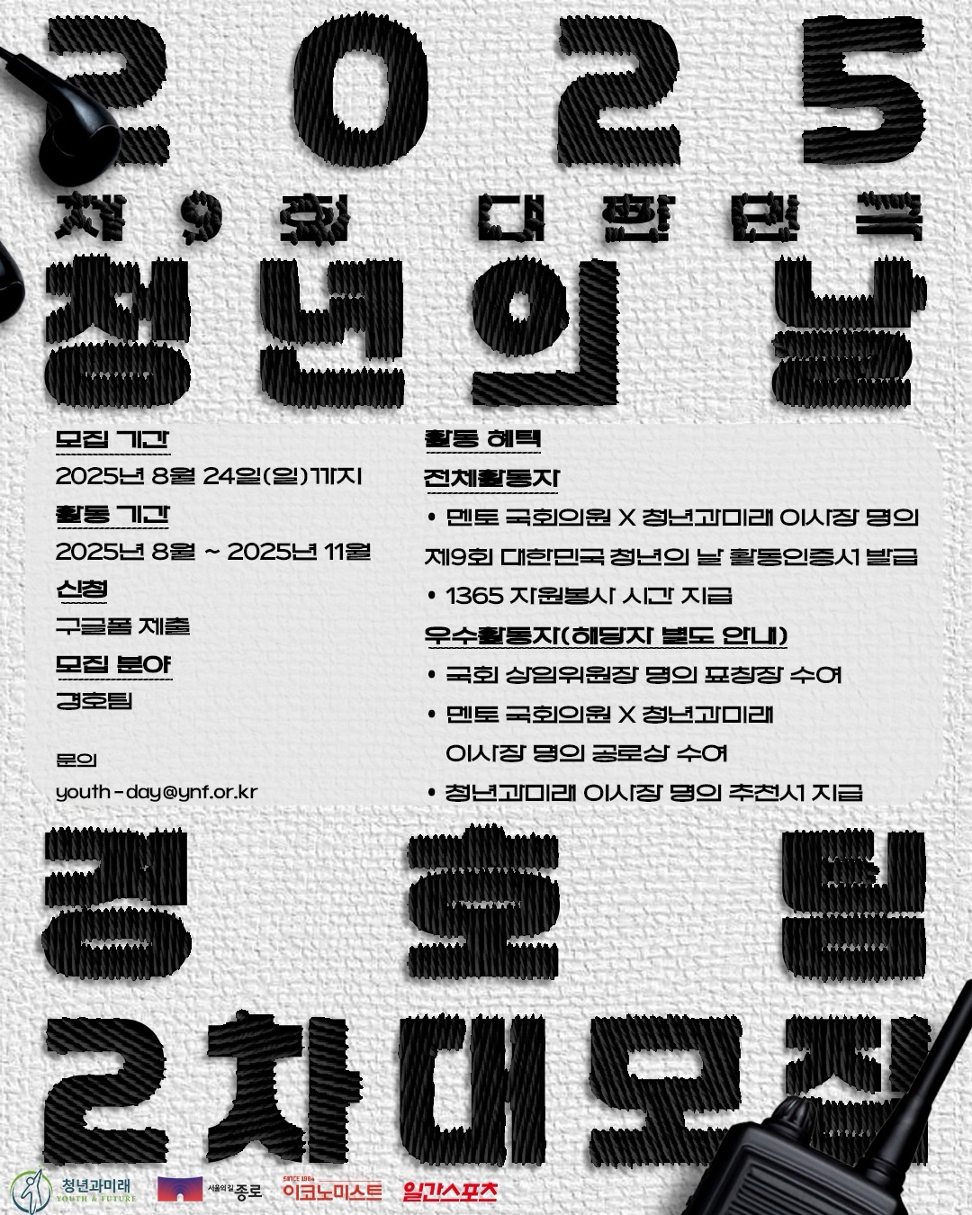 [2025 제9회 대한민국 청년의 날] 기획홍보단 경호팀 2차 대모집!