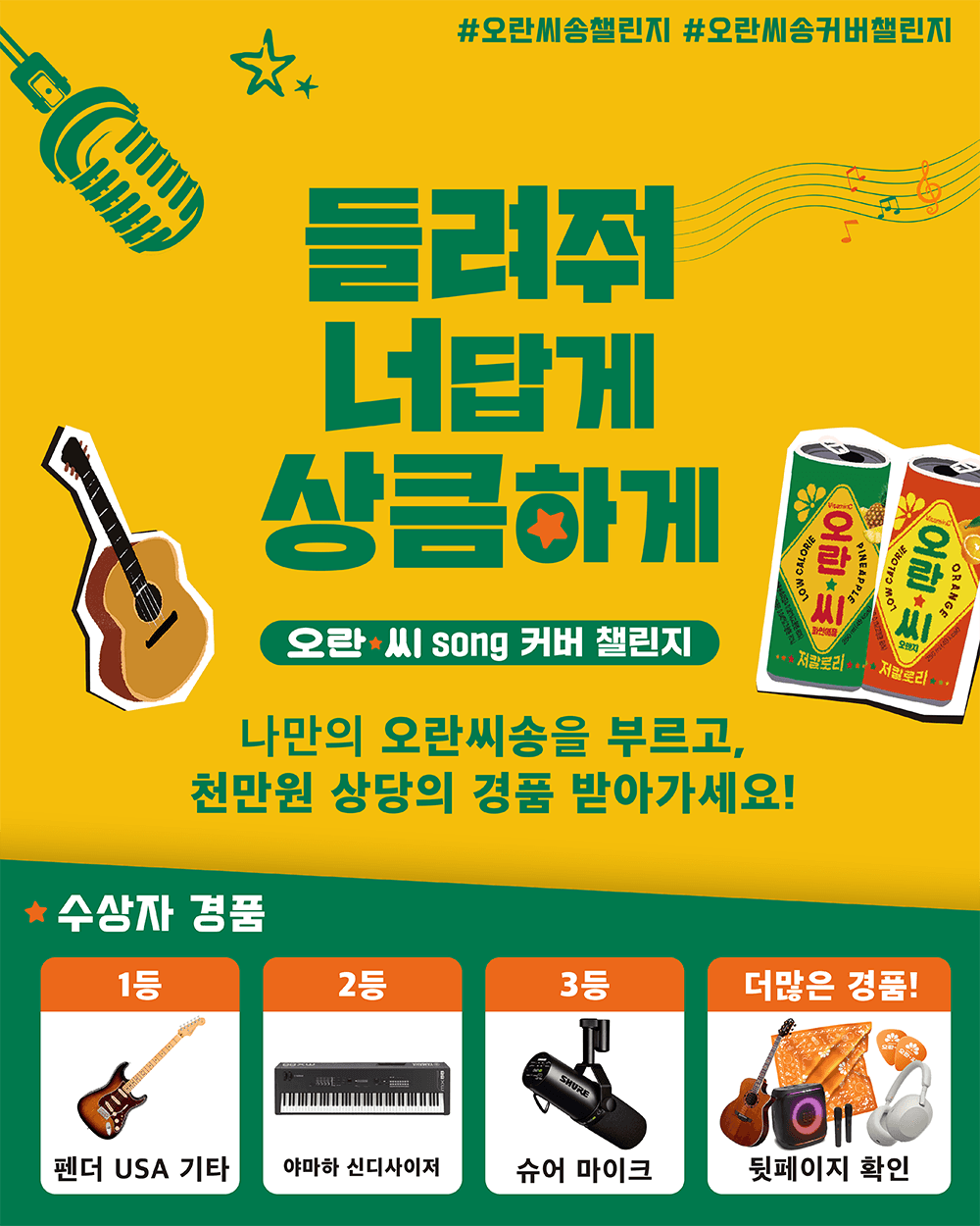 *상위수상자 중 5명 대상 옥상달빛과 함께 하는 오란씨송 콘서트 공연 기회 제공