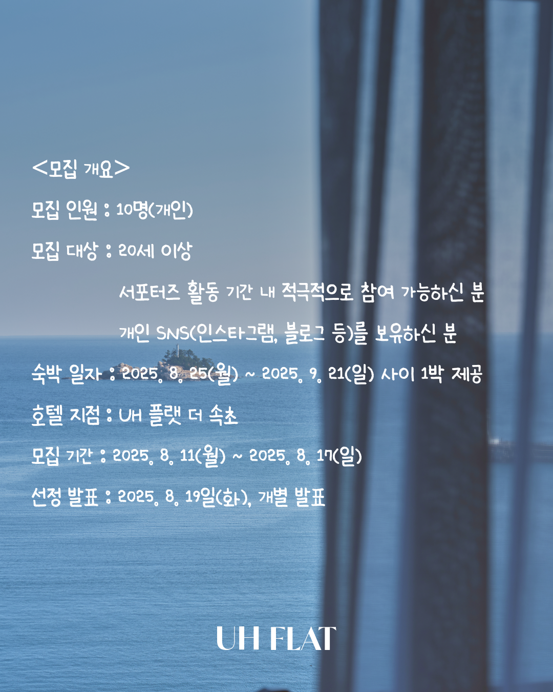 - UH 플랫 더 속초 2인 객실 1박 제공(평일만 가능)