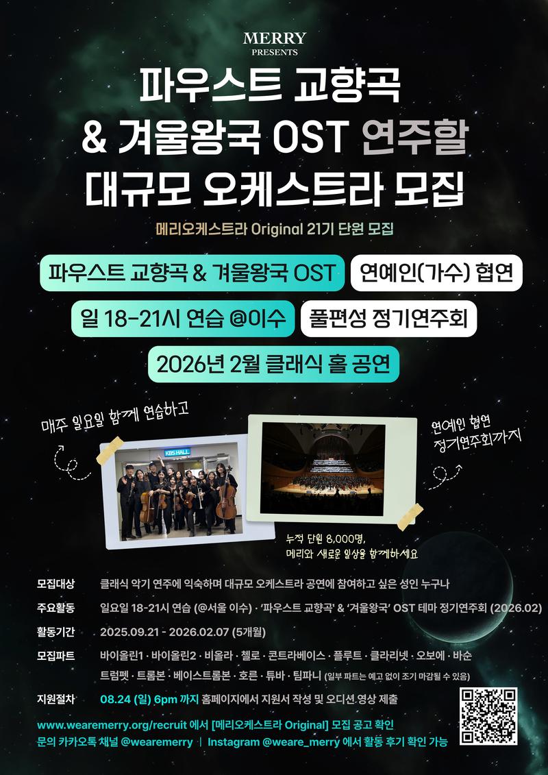 클래식 악기 연주에 익숙하고 오케스트라 합주를 경험하고 싶은 사람!