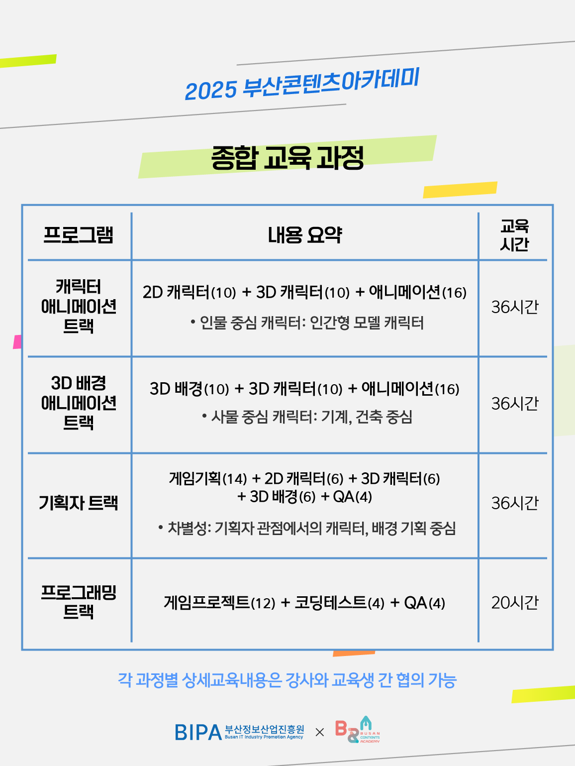 - 각 과정별 상세 교육 내용은 강사와 교육생 간 협의 가능