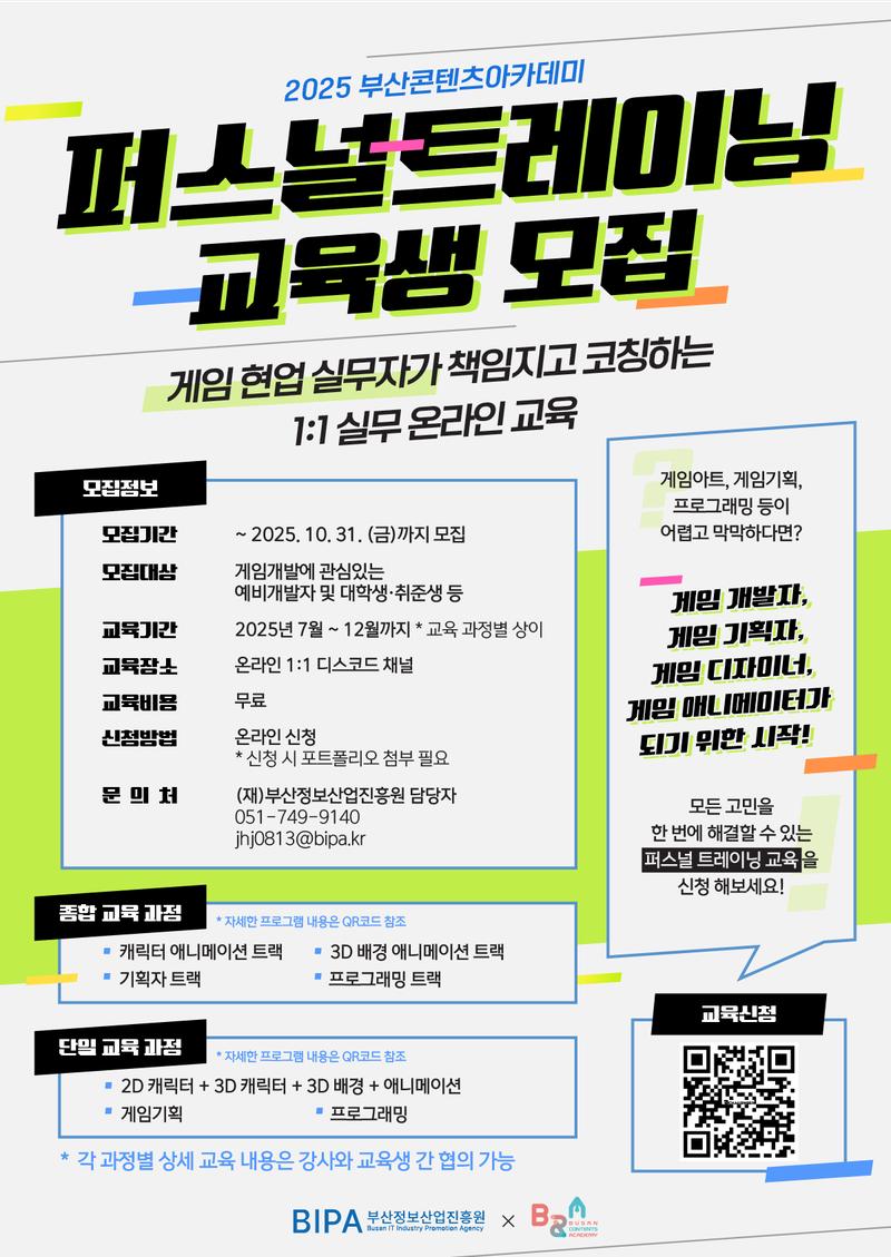 2025 부산콘텐츠아카데미 퍼스널 트레이닝 교육생 모집