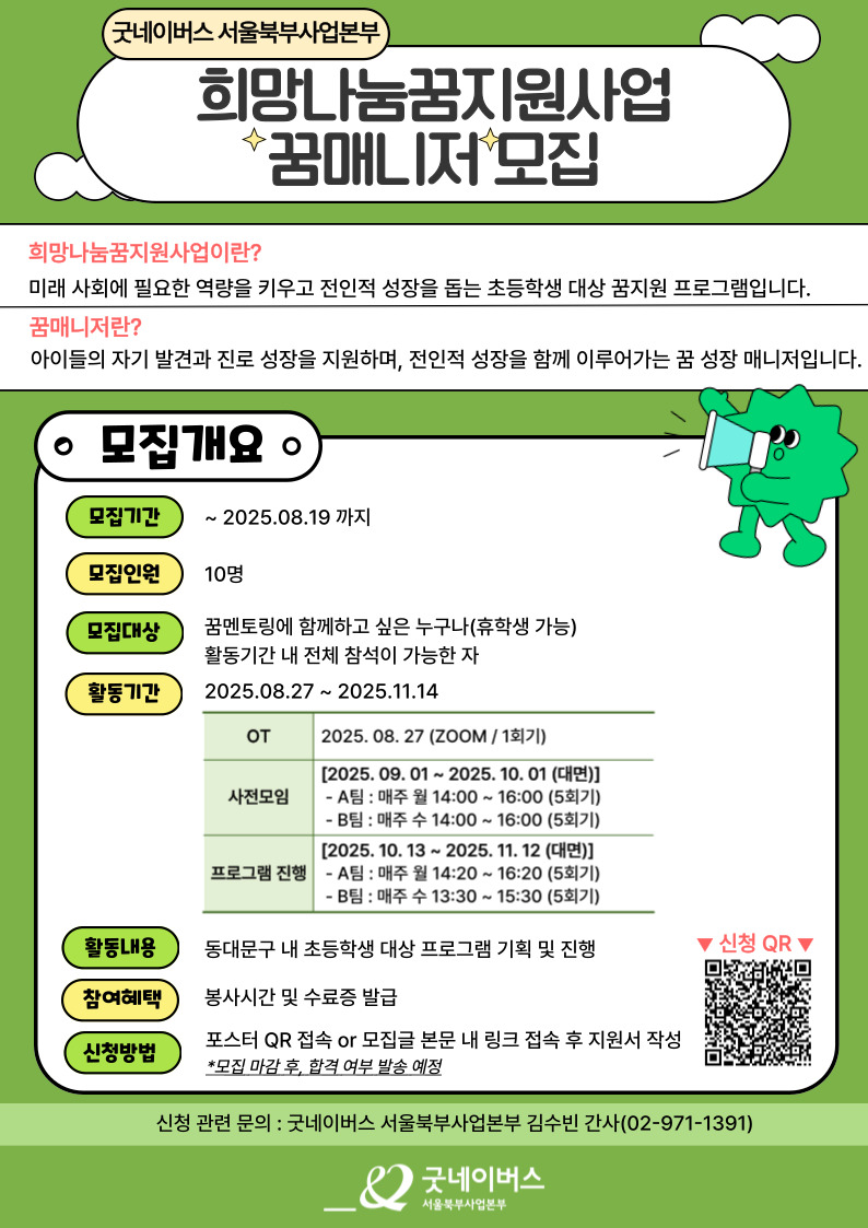 아이들의 자기 발견과 진로 성장을 지원하며, 전인적 성장을 함께 이루어가는 꿈 성장 매니저로 함께해요 :)