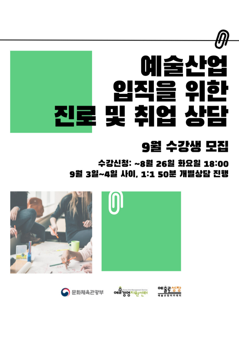 예술산업 입직 희망자의 맞춤형 취업 경로 개발을 위한 1:1 개인별 상담 프로그램입니다.