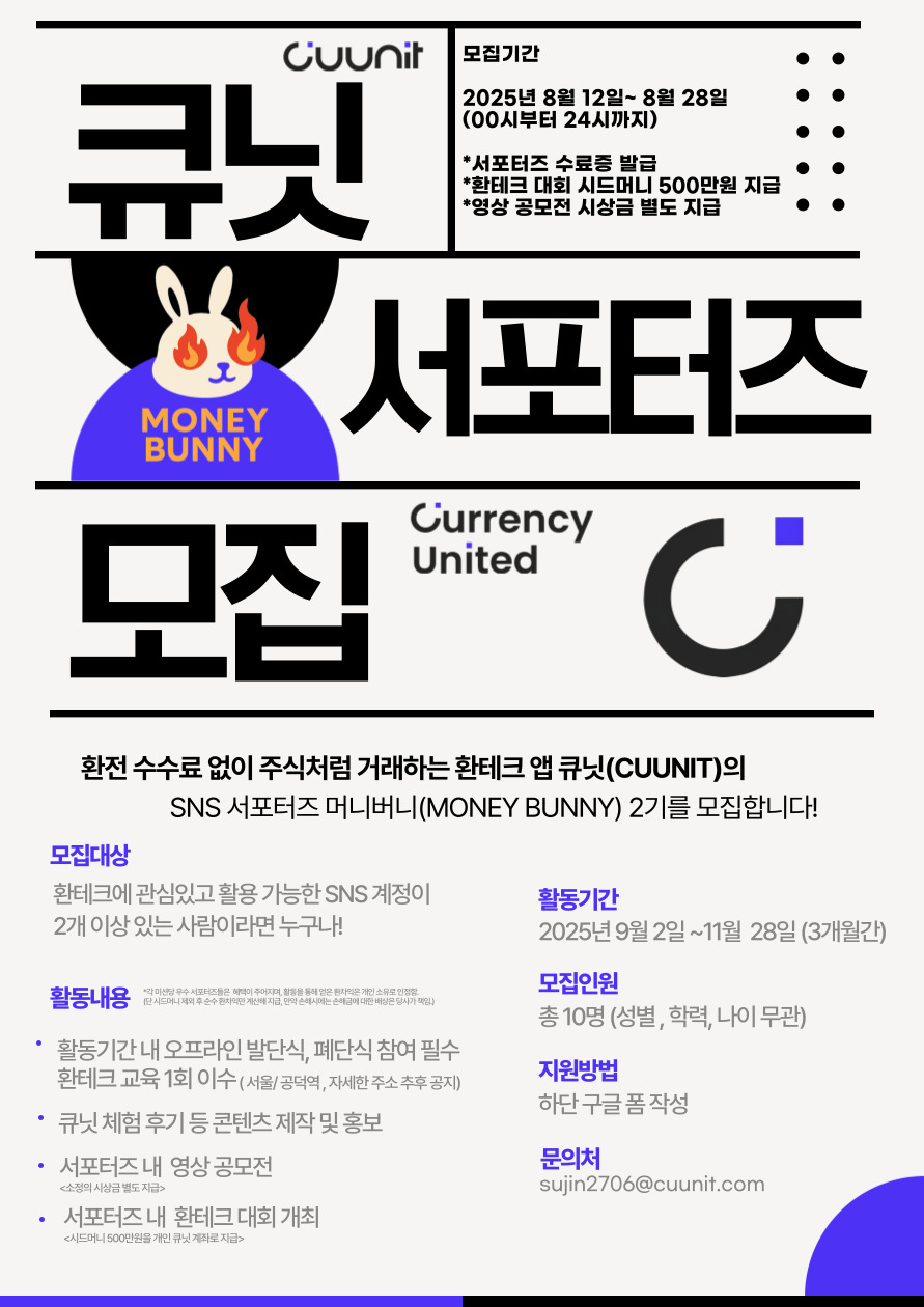 외화 거래 플랫폼 큐닛(CUUNIT)을 함께 알릴 서포터즈