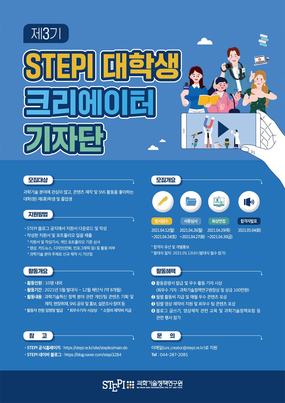 - STEPI 공식홈페이지 또는 STEPI 블로그 공지에서 지원서 다운로드 및 작성