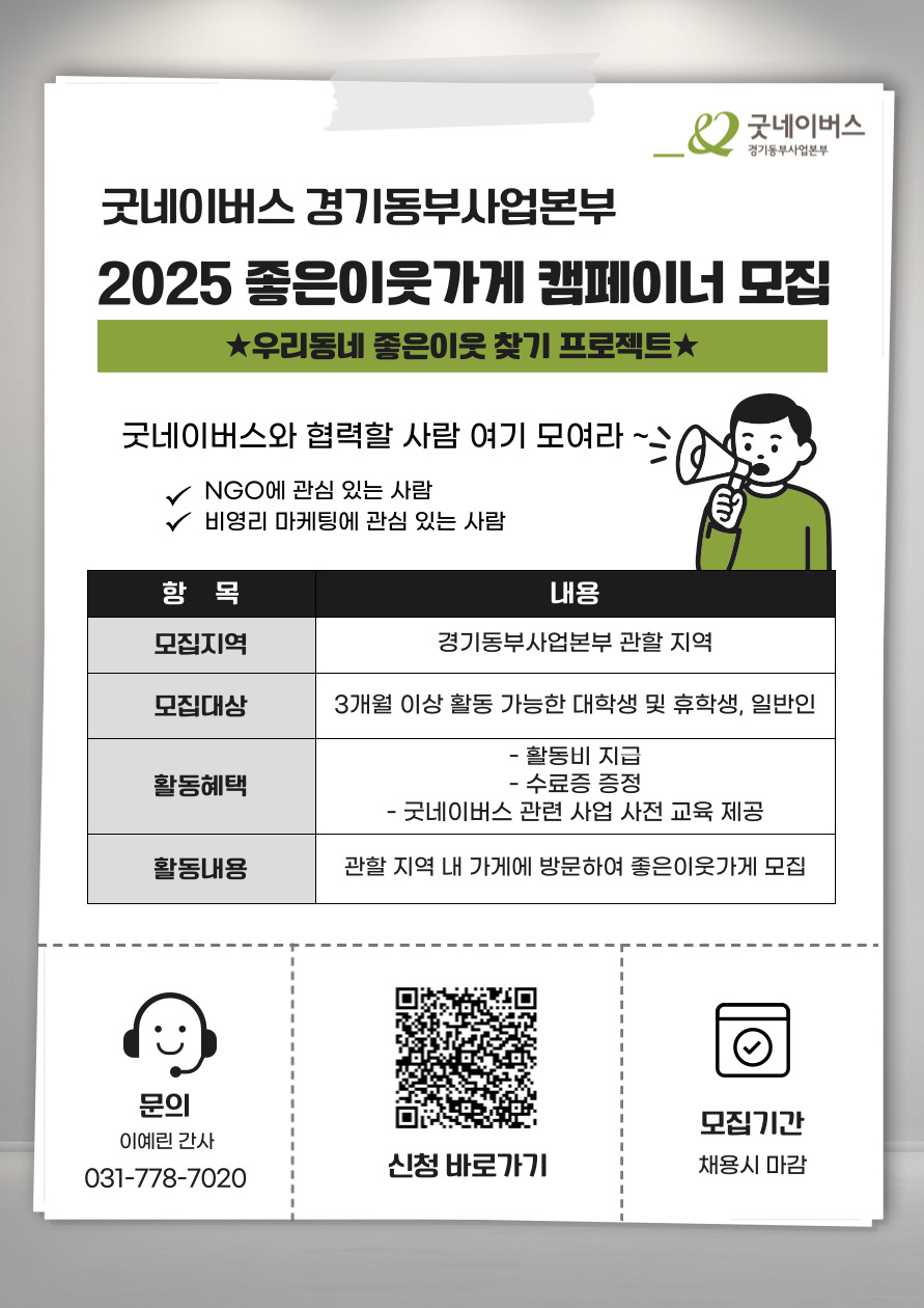 안녕하세요 굿네이버스 경기동부사업본부입니다.