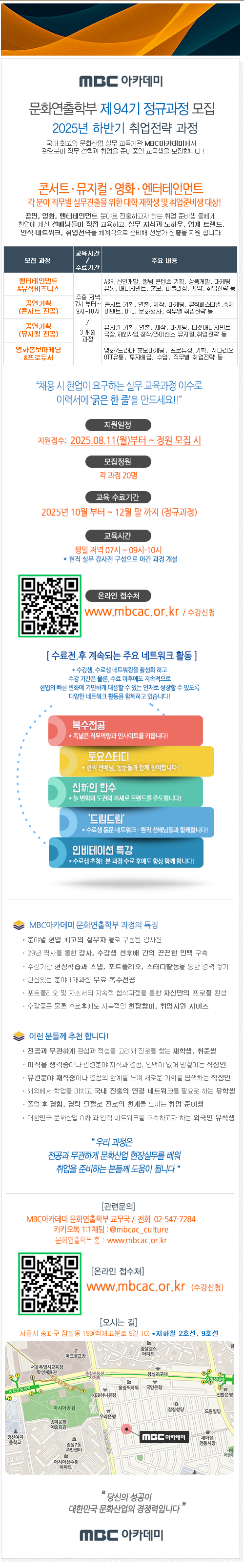 [MBC아카데미] 2025년 하반기 '제94기' 문화산업 각 분야 비즈니스 직무 중심의 실무 멘토링 교육생을 모집하오니 '대학생, 취업 준비생' 여러분의 많은 지원 바랍니다!