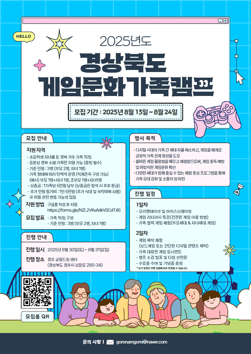 🎮 2025 경상북도 게임문화 가족 캠프 참가 가족 모집 🎮