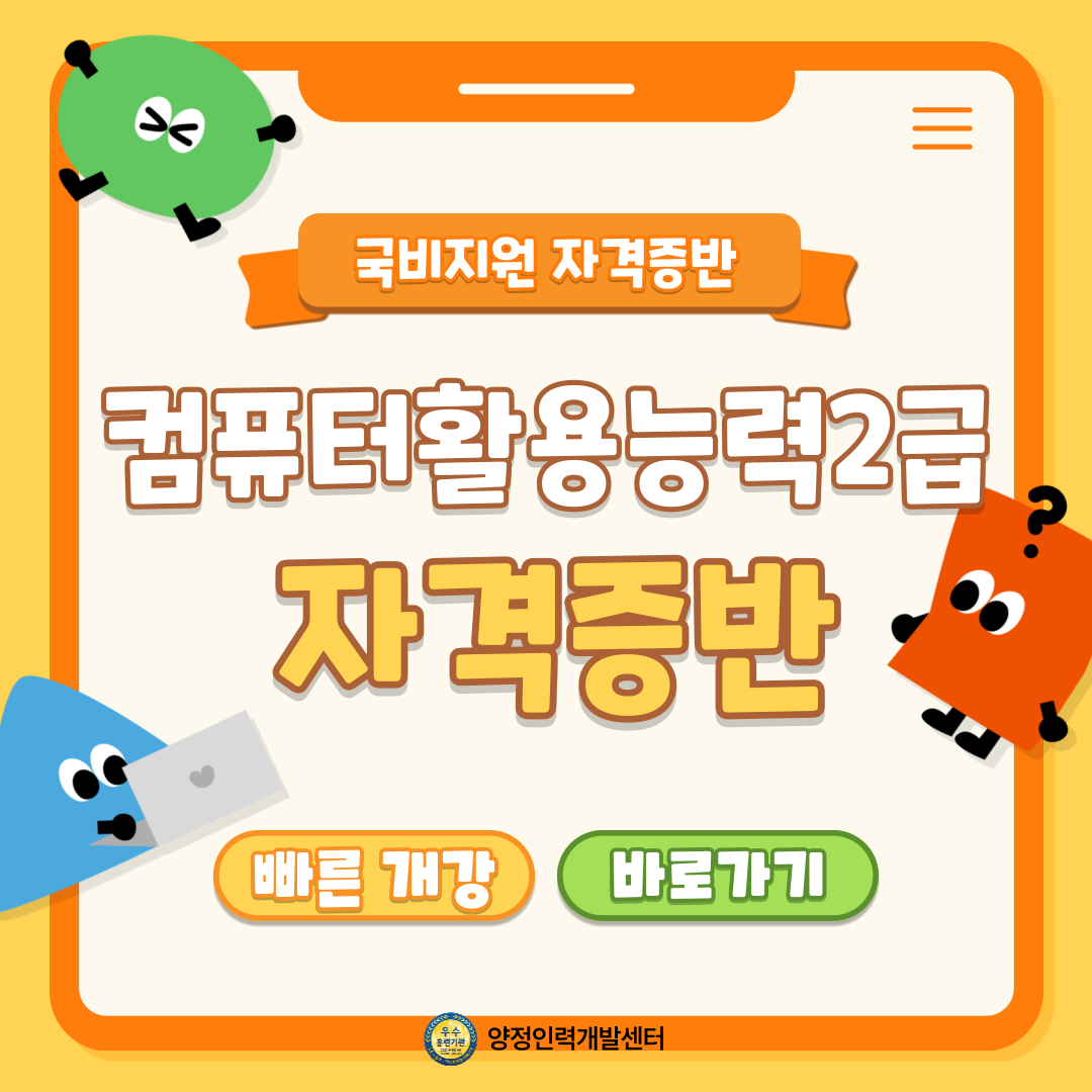 💻 컴퓨터활용능력2급 자격증 대비반!