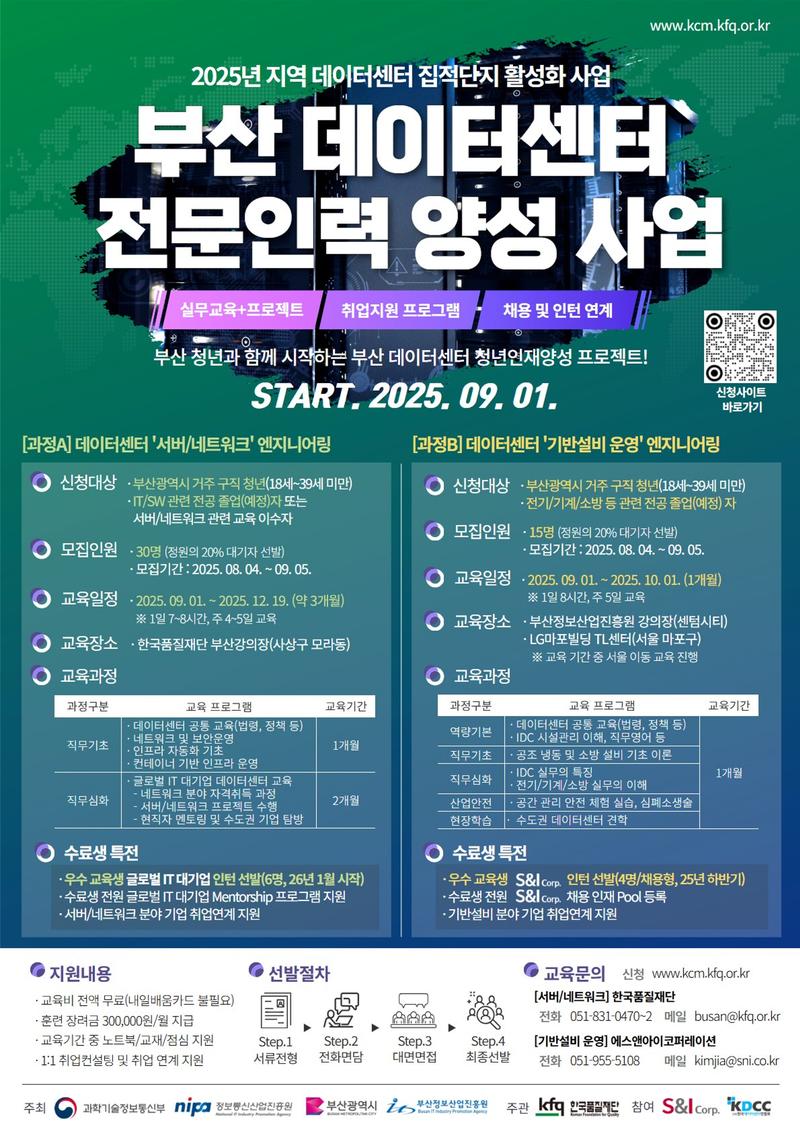 부산 데이터센터 전문인력 양성 프로젝트 교육생 모집!(~9/5)