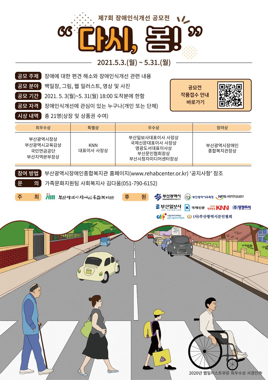 제 7회 장애인식개선 공모전 <다시, 봄!>을 개최하니 많은 참여 바랍니다.