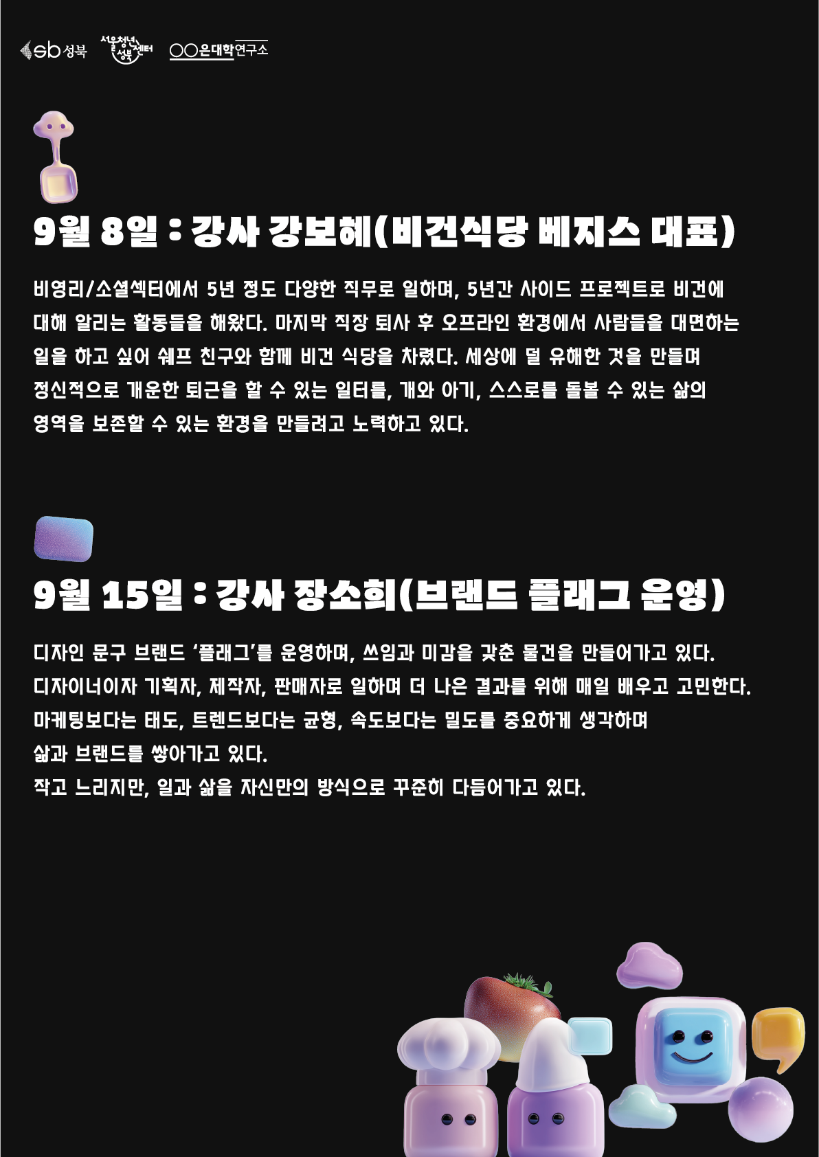 - 일시 : 25. 8. 25. ~ 9. 15. 매주 월요일 19:00~20:30