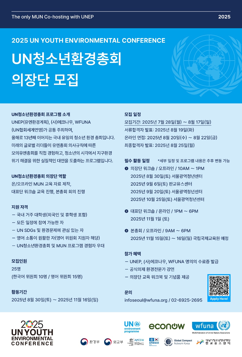 2025 UN청소년환경총회 의장단 모집이 시작되었습니다!
