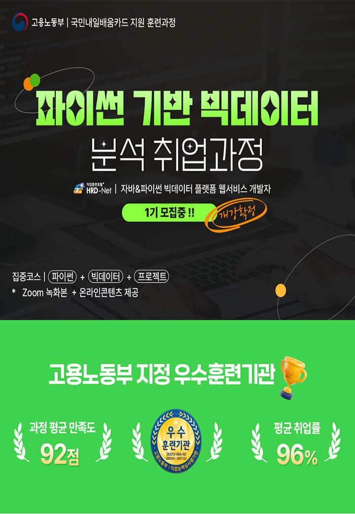 훈련과정 : 파이썬 기반 빅데이터 분석 취업 과정