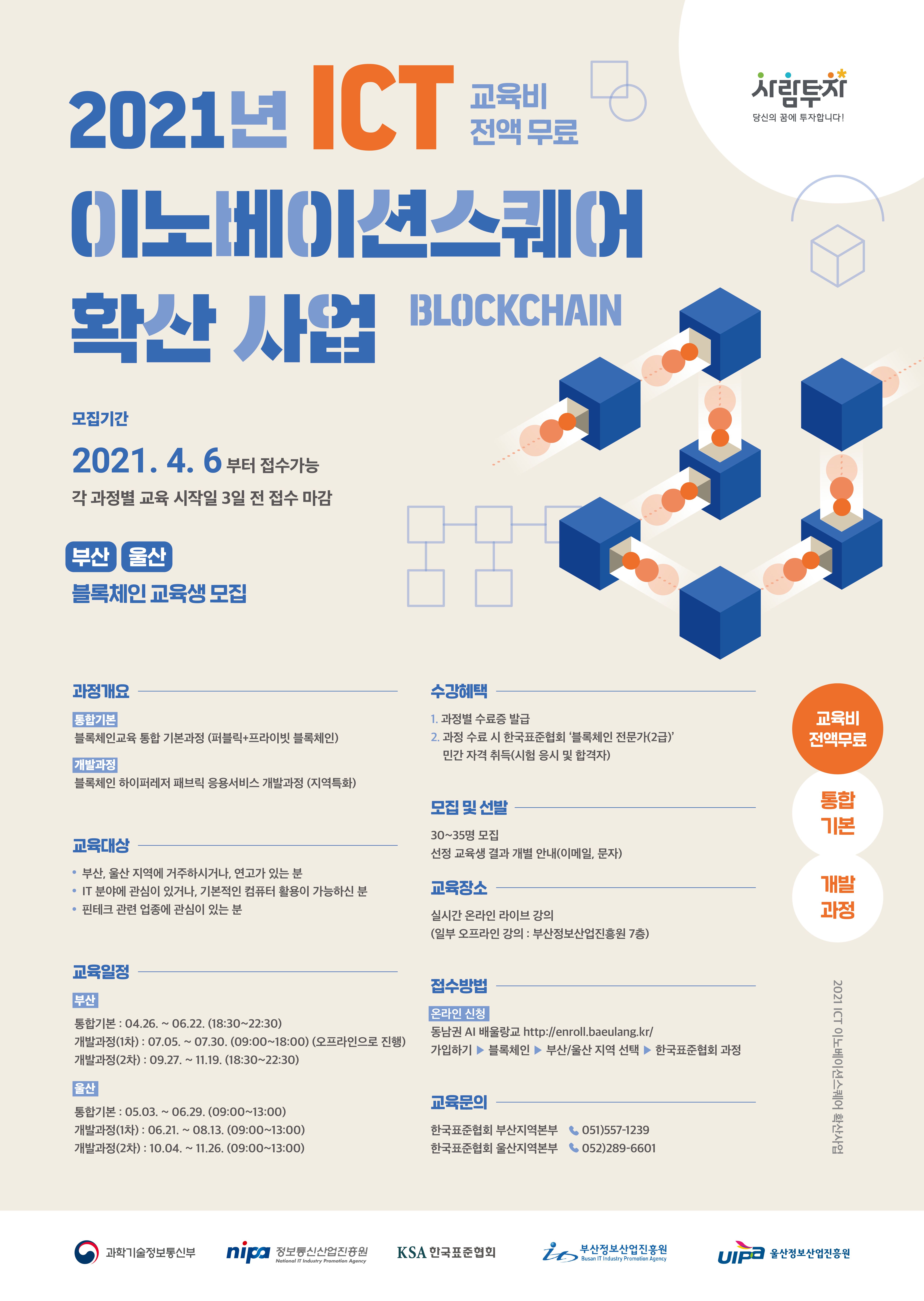 - 과정 수료 시 한국표준협회 '블록체인 전문가(2급)' 민간자격증 응시 기회 제공