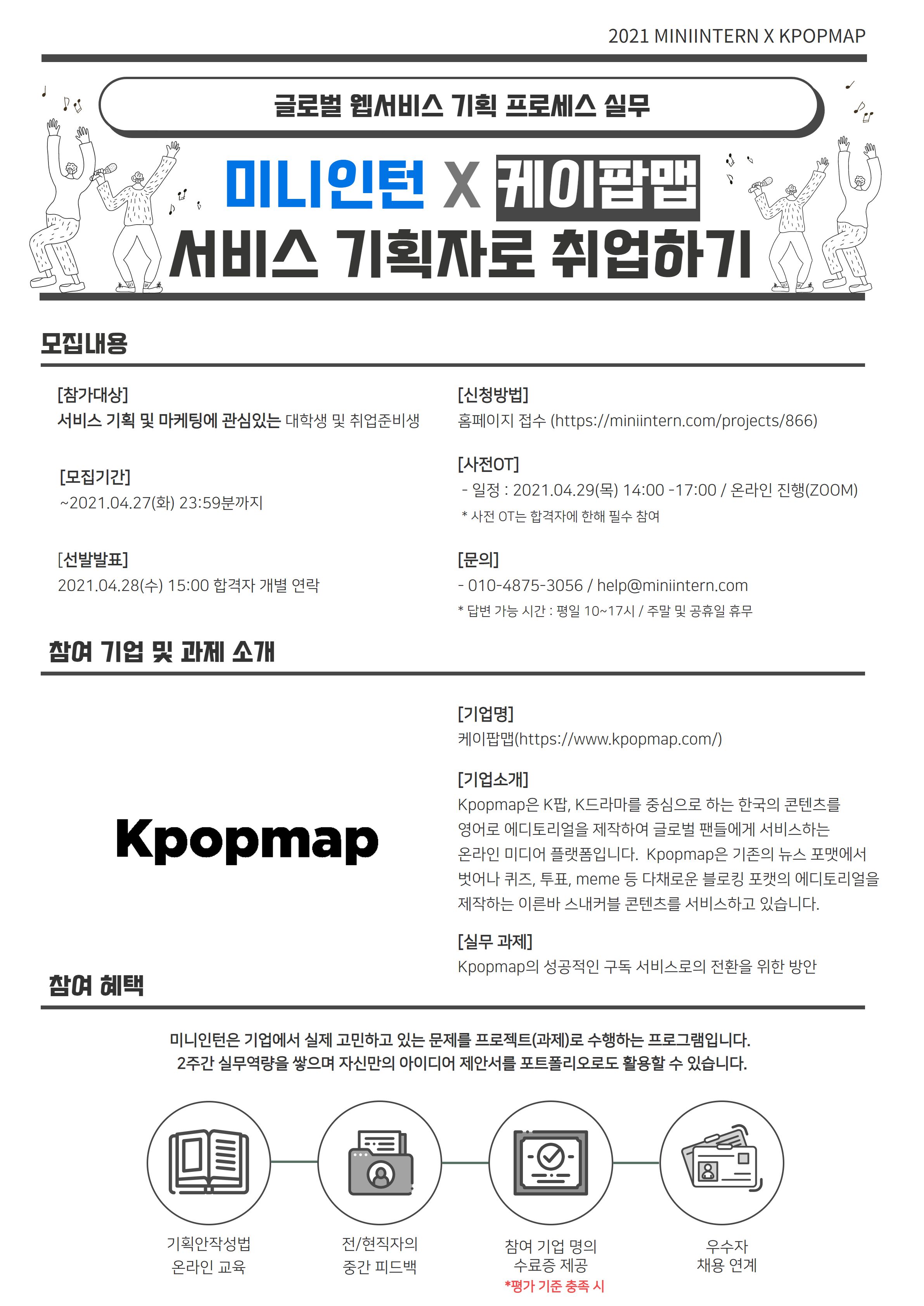 [미니인턴X케이팝맵] 스펙말고 실무 역량으로 서비스 기획자로 취업하자(~4/27)
