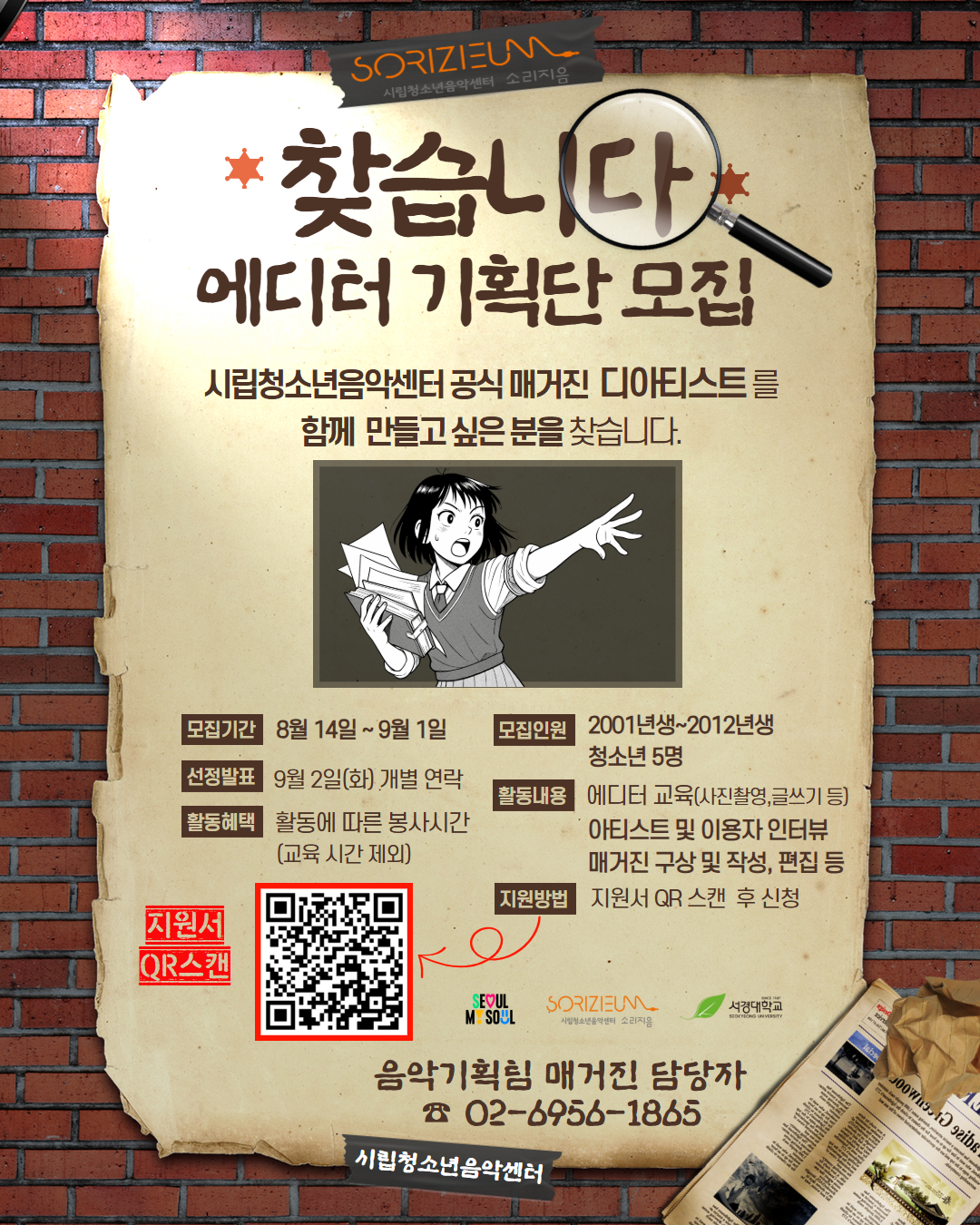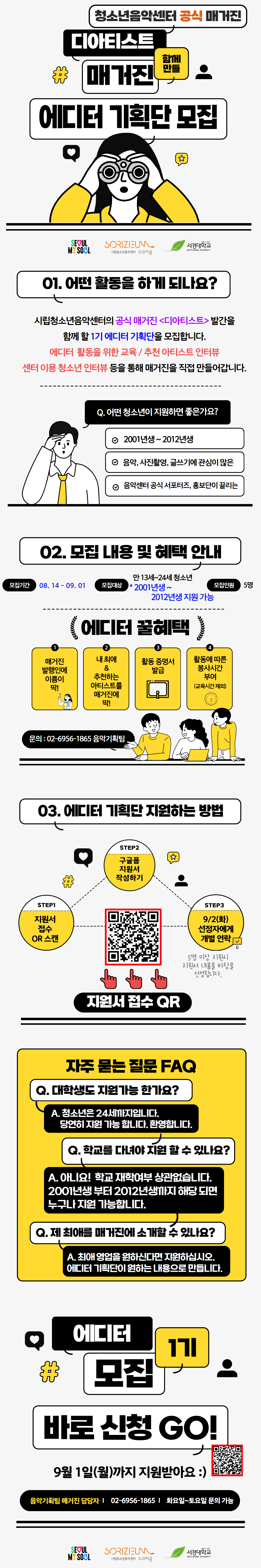 🎬시립청소년음악센터 공식 매거진 <디아티스트>를 함께 만들어갈 에디터 기획단 을 모집합니다.