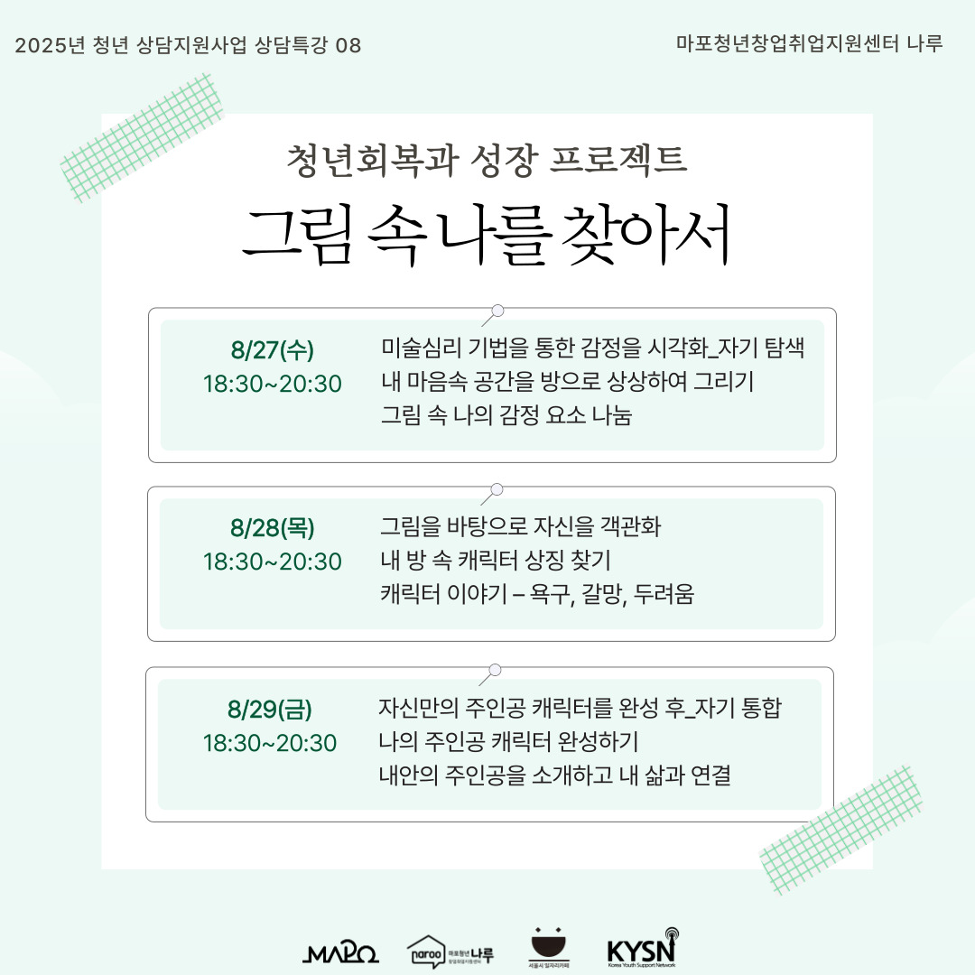 ✅ 일정: 2025년 8월 27일(수)~ 8월 29일(금) 18:30~20:30 (수,목,금_총3회기)
