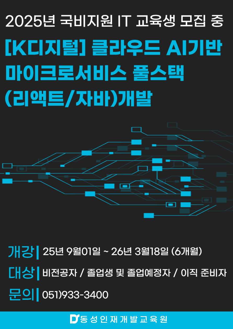 #부산코딩학원 #서면코딩학원 #부산IT학원 #서면IT학원 #부산자바학원 #서면자바학원 # #부산스프링학원 #서면스프링학원 #부산자바스크립트 #서면파이썬학원 #자바학원 #파이썬학원 #IT학원 #부산IT국비학원 #부산국비학원 #서면국비학원 #웹개발자학원 #동성인재개발교육원 #서면동성인재개발교육원 #부산동성인재개발교육원 #부산국비무료 #부산국비교육 #부산내일배움카드 #서면학원 #부산K디지털