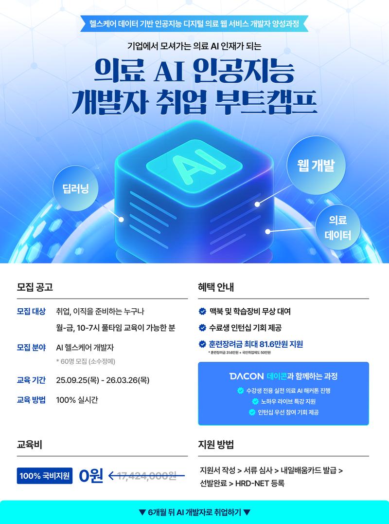 - AI·헬스케어 개발자로 취업을 희망하는 취업준비생, 졸업(예정자), 휴학(예정)자