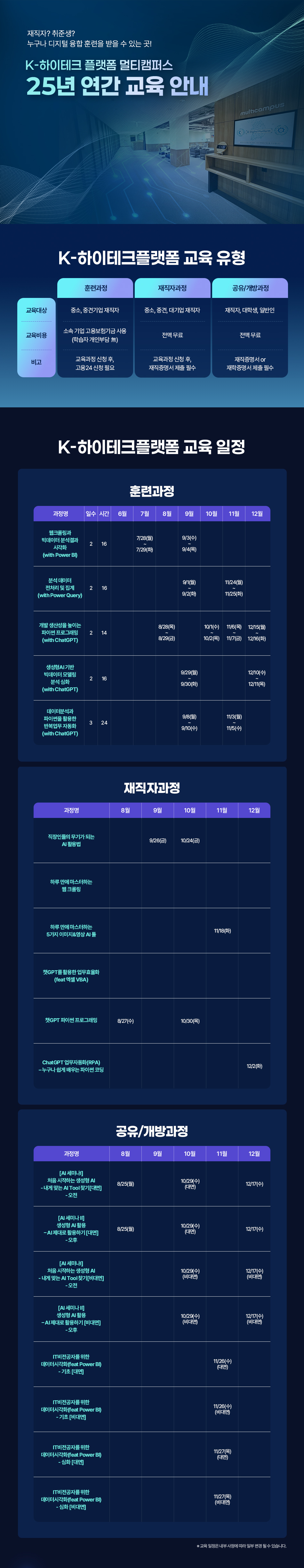 25년 하반기, 멀티캠퍼스 K-하이테크 플랫폼에서 디지털 역량 강화 교육 과정이 열리는데요!