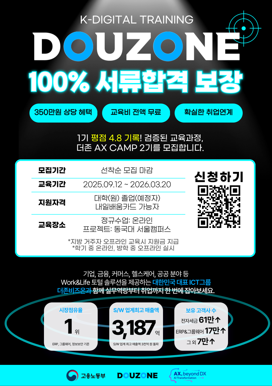 [더존비즈온] 더존 AX CAMP 2기 모집 - 실전 AI 서비스 기획 및 개발 전문가 취업 연계 과정