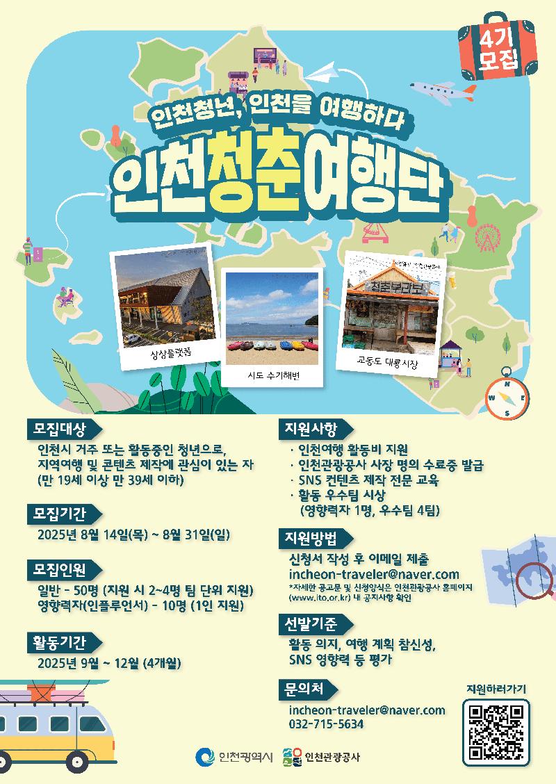 새로운 인천의 관광자원을 발굴하고 홍보하는 인천청춘여행단 4기를 모집합니다!