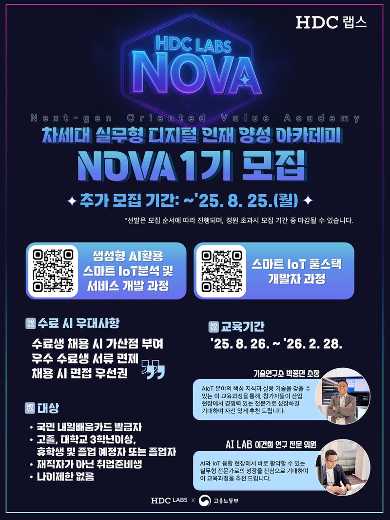 미래를 이끌어갈 핵심 기술인 인공지능(AI)과 사물인터넷(IoT) 분야의 실무형 전문가가 되고 싶다면, HDC랩스 NOVA 과정이 정답입니다.