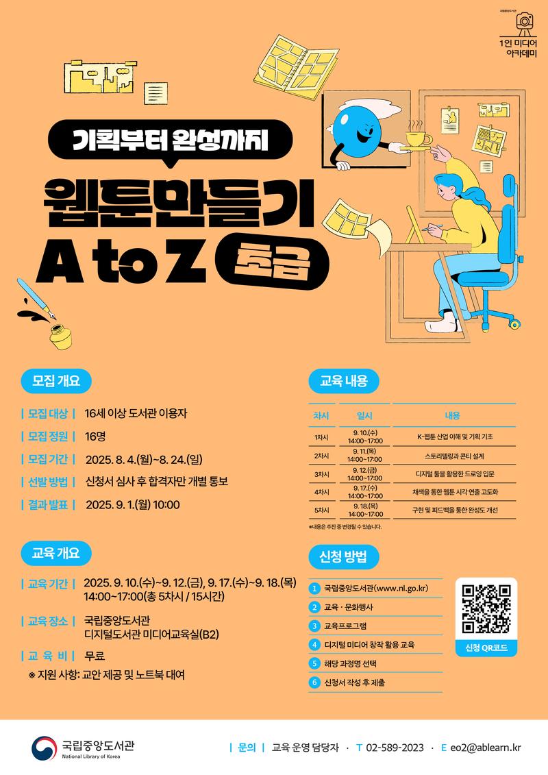 「웹툰 만들기 A to Z : 기획부터 완성까지(초급)」 과정은 웹툰 제작의 전 과정을 실습 중심으로 배울 기회입니다.
