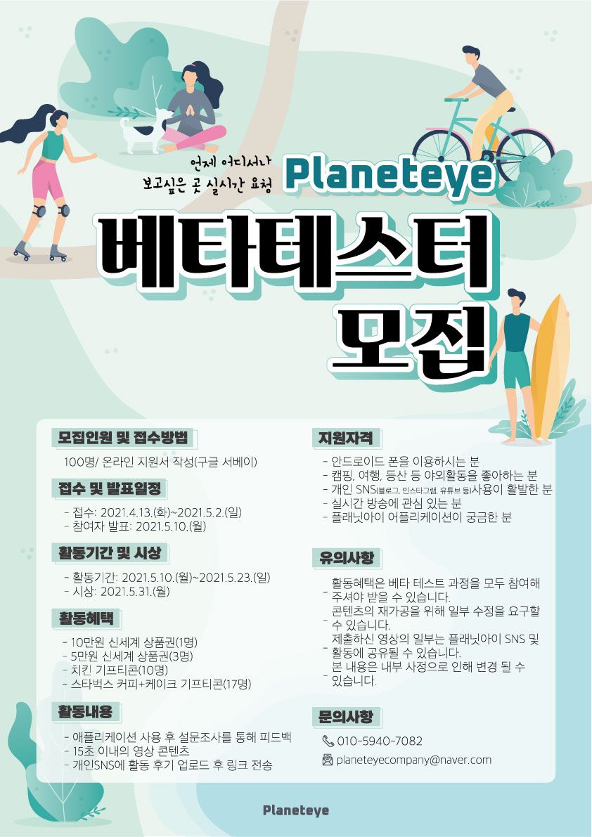 플래닛아이를 통해 새롭고 즐거운 경험을 해보실 테스터를 찾습니다!