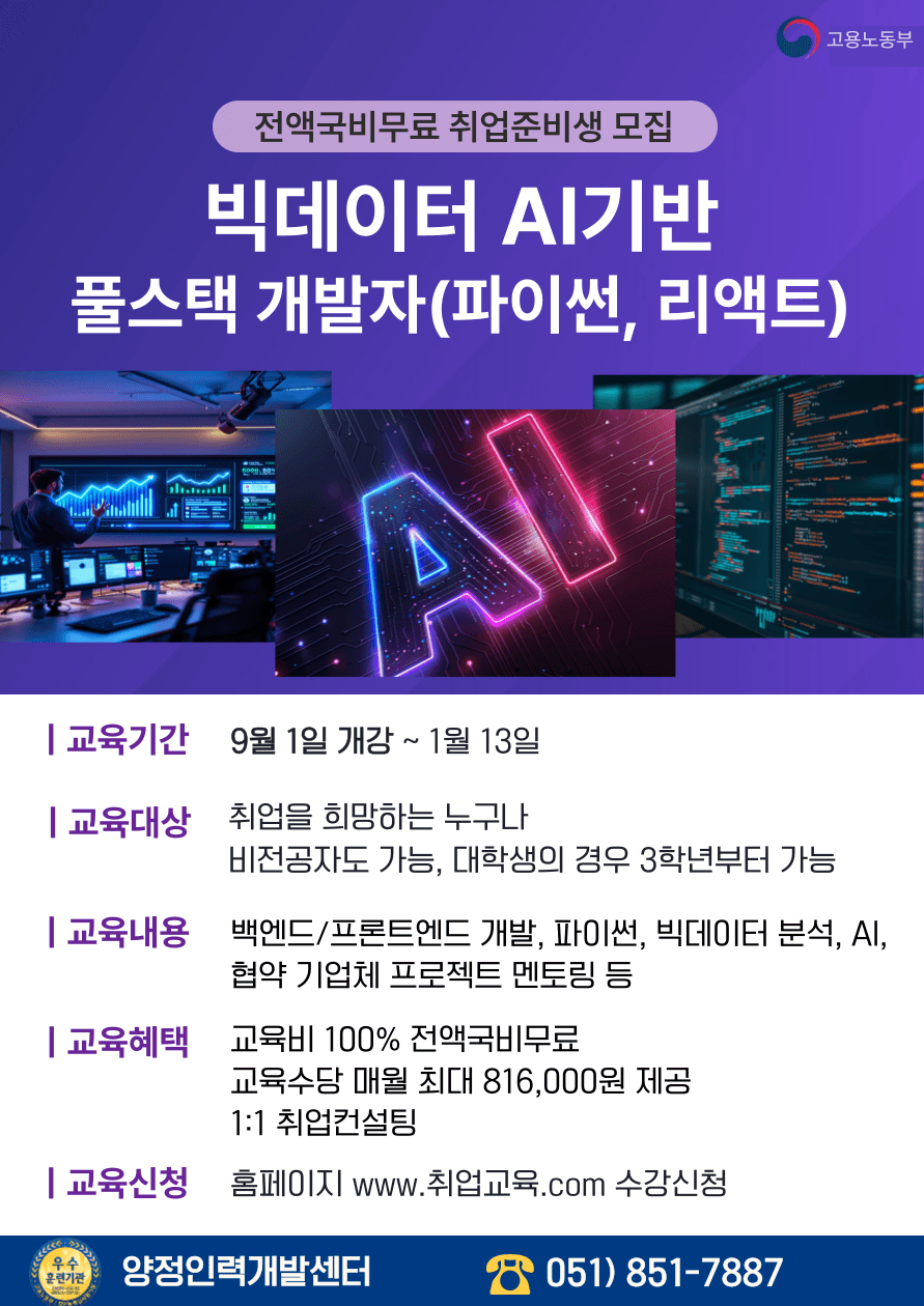 [전액국비/취업준비반] 빅데이터 AI 풀스택 개발자(파이썬, 리액트)