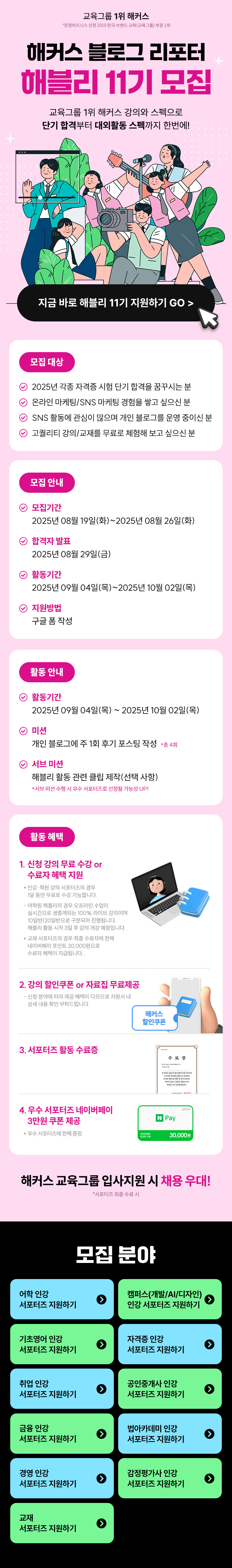 해커스 블로그 리포터 해블리 11기 서포터즈 모집