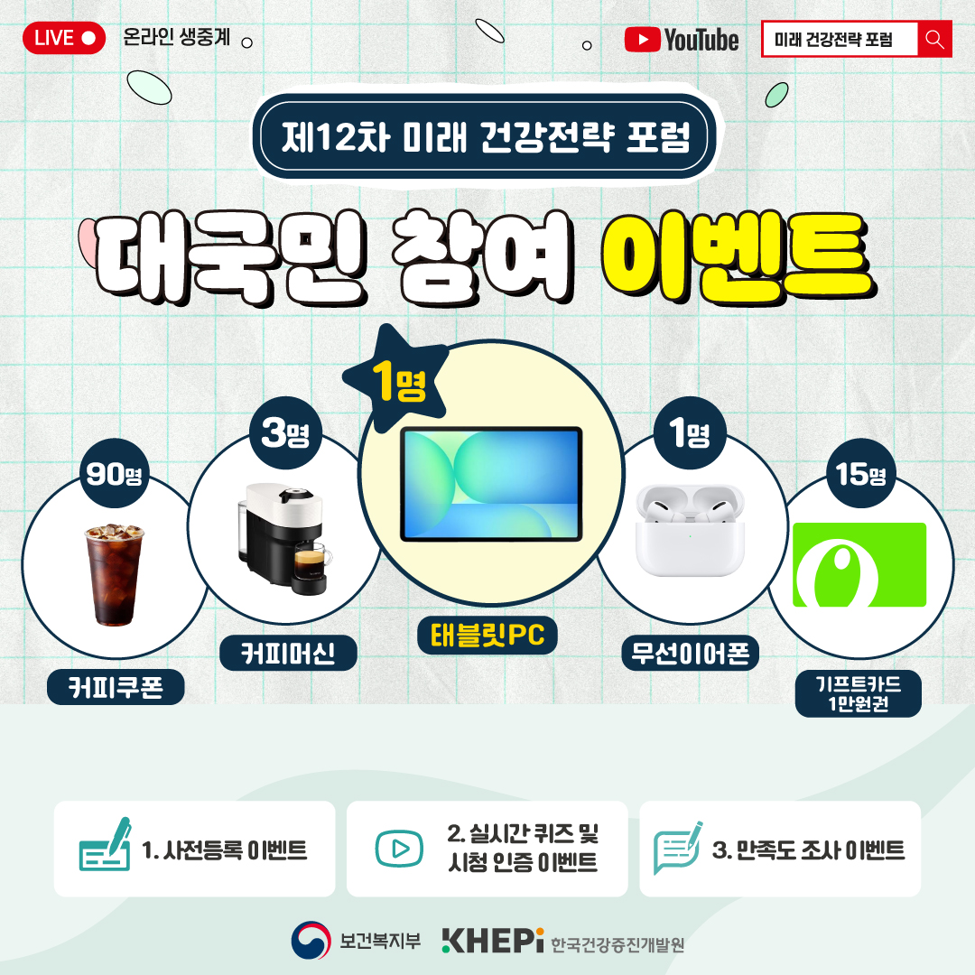 한국건강증진개발원 유튜브 채널을 통해 실시간 참여가 가능하며, 현장 참석도 가능합니다!