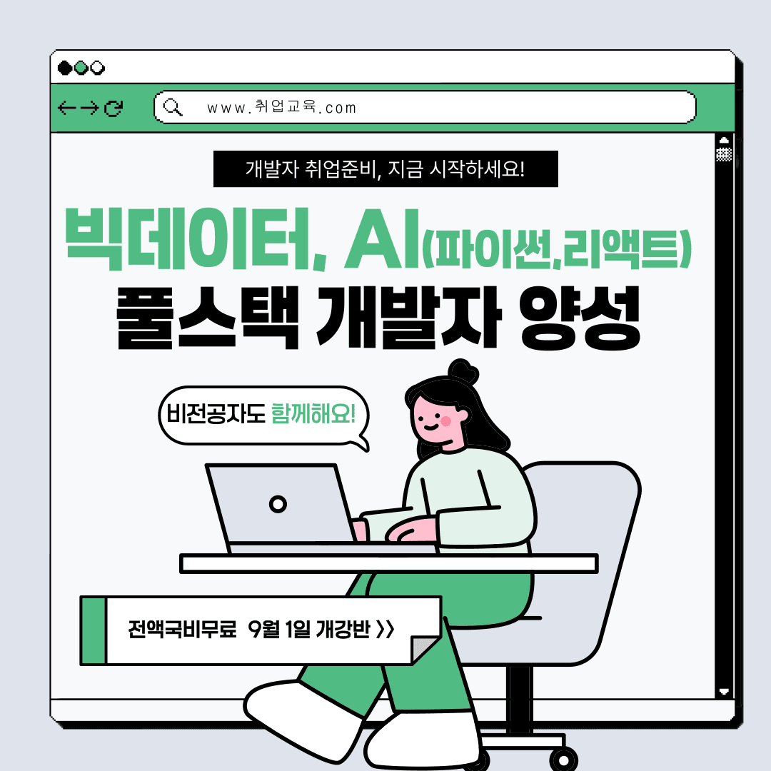 [전액국비/비전공자ok] 빅데이터 AI 기반 풀스택개발자(파이썬, 리액트) 취업준비생 모집