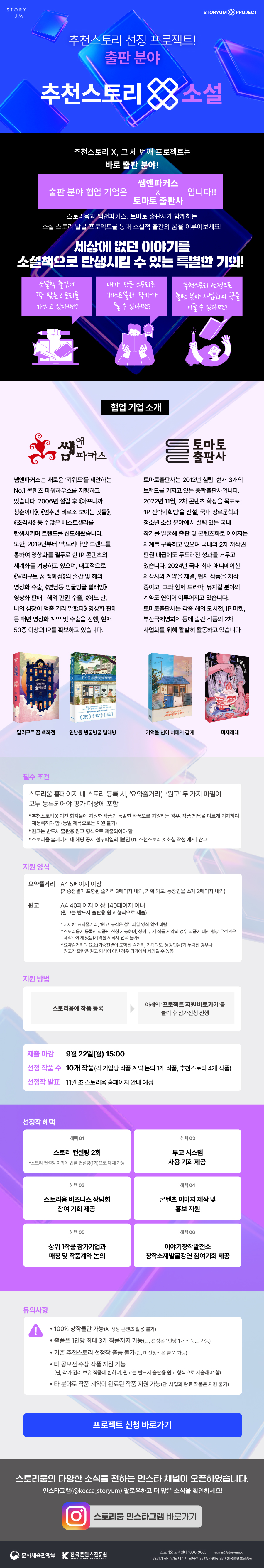 [한국콘텐츠진흥원 스토리움]2025년 추천스토리 X 소설(~ 9월 22일(월) 15시 마감)