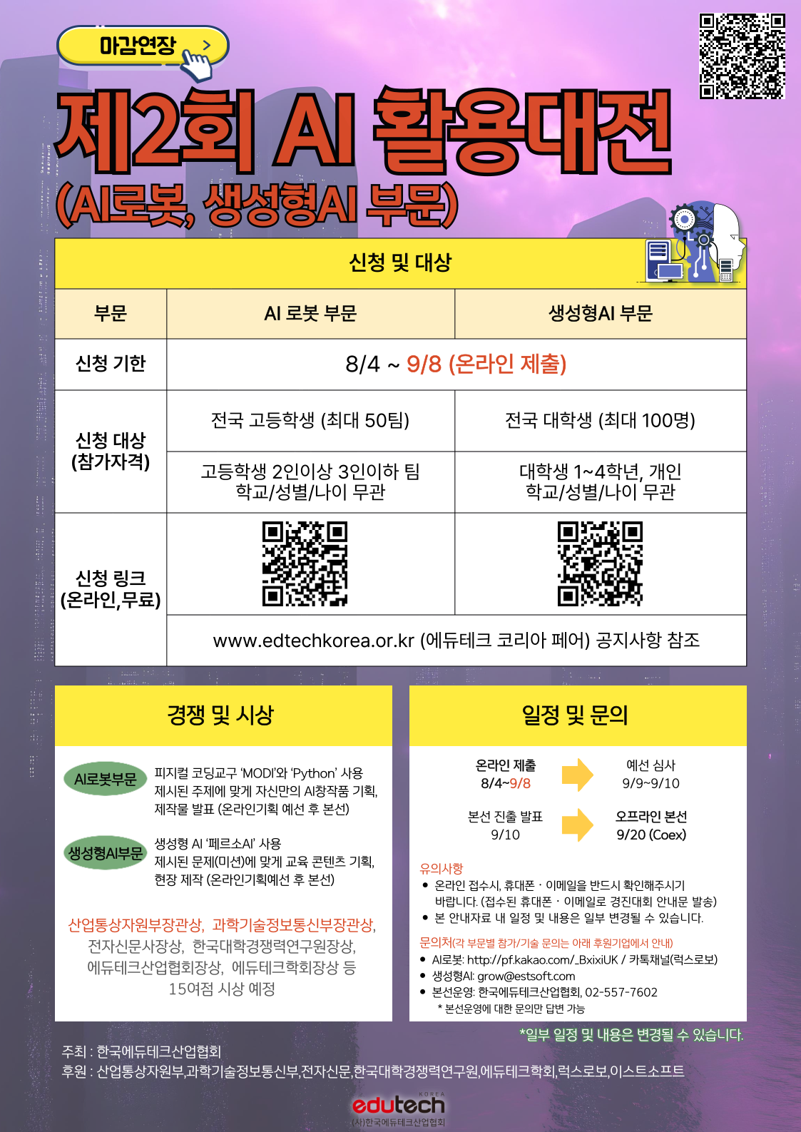 - λΆμΌ: AIλ‘λ΄ (μμ΄λμ΄ κΈ°ν, μ μλ¬Ό λ°ν) : μ κ΅ κ³ λ±νμ(ν)