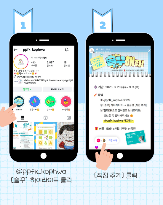 ① 인스타그램 @ppfk_kophwa [슬꾸] 하이라이트 → [직접 추가] 클릭