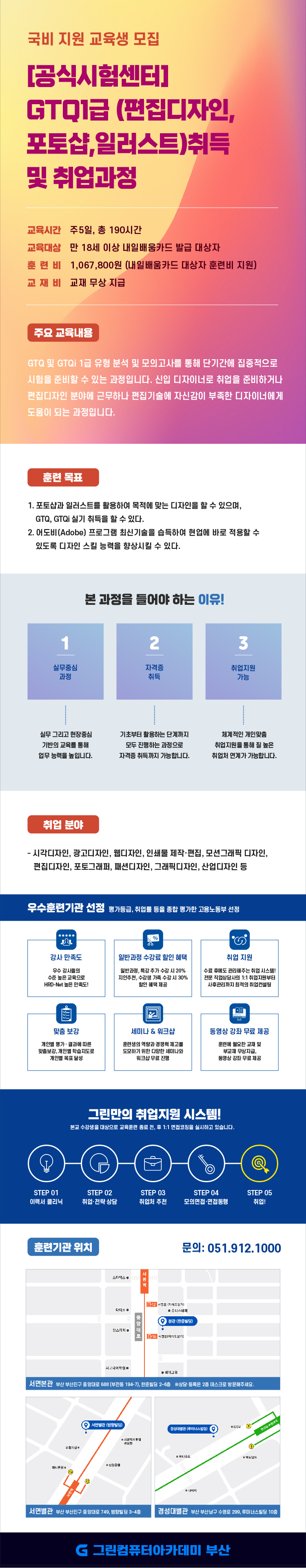 ■ 과정명 : [공식시험센터] GTQ1급 (편집디자인,포토샵,일러스트)취득 및 취업과정