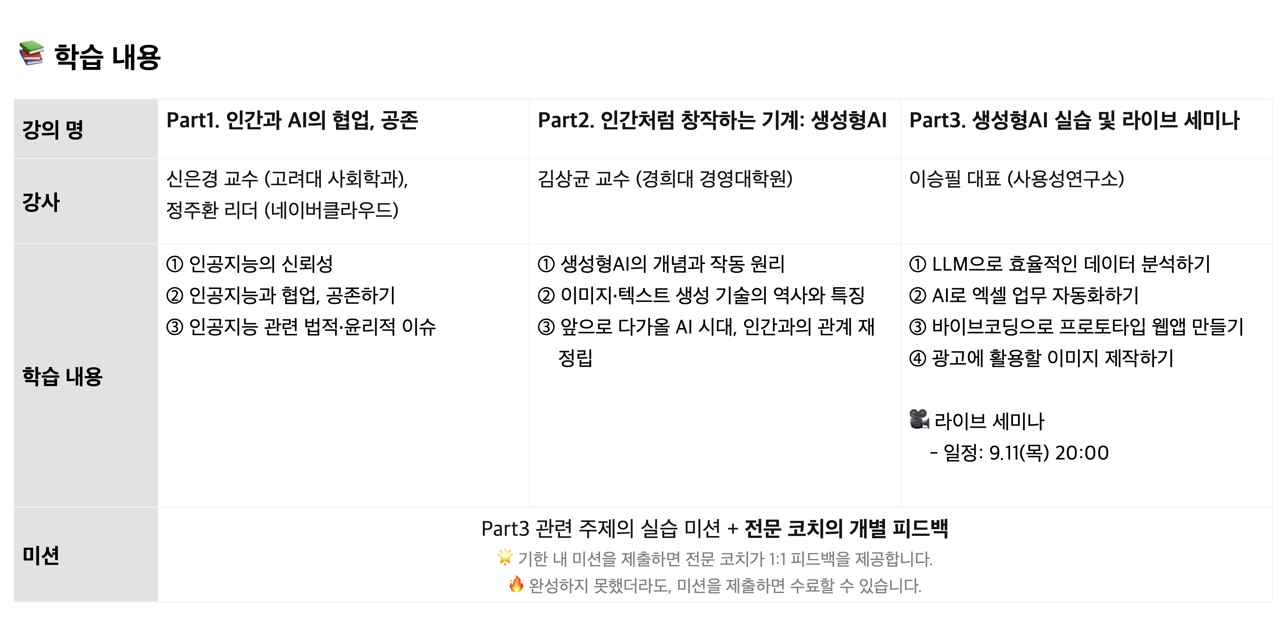 - 라이브 세미나 일정: 09.11 (목) 20:00