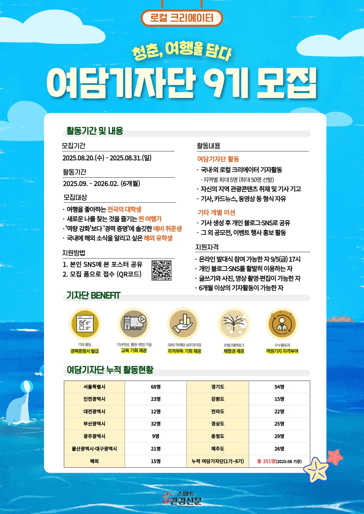 스마트관광신문에서 대학생 여행기자단 <여담 9기>를 모집합니다.