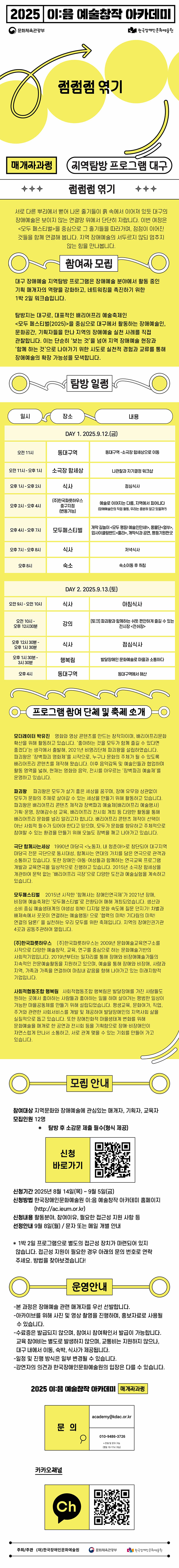 ◎ 신청방법: 한국장애인문화예술원 이음 예술창작 아카데미 홈페이지 (http://ac.ieum.or.kr)