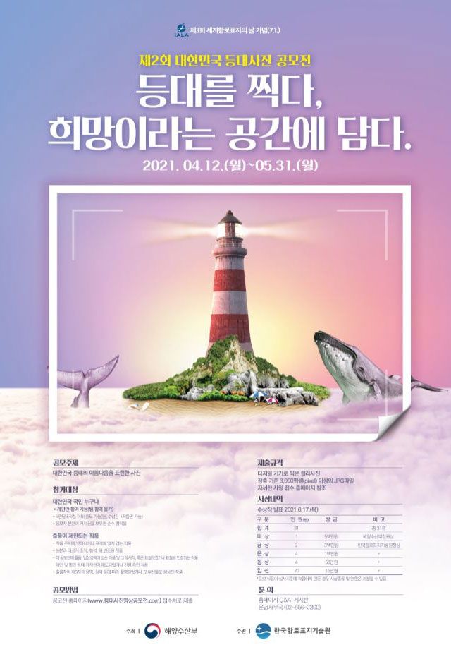 - 제2회 대한민국 등대 사진, 영상 공모전 운영사무국(TEL. 02-556-2300)