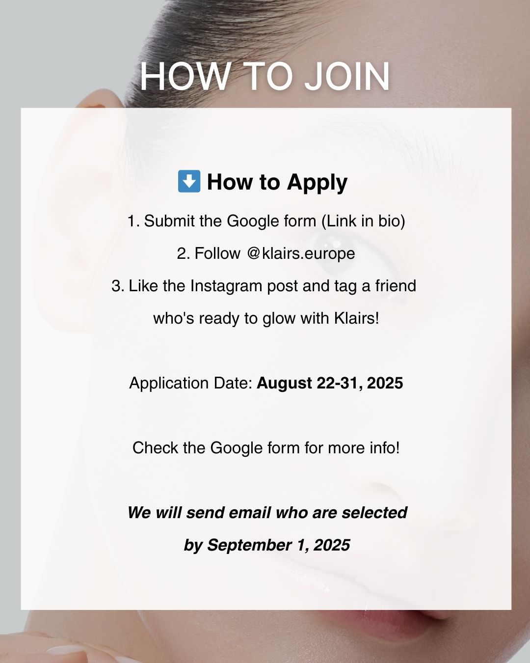 Dear, Klairs is looking for passionate content creators who have interest in K-beauty!