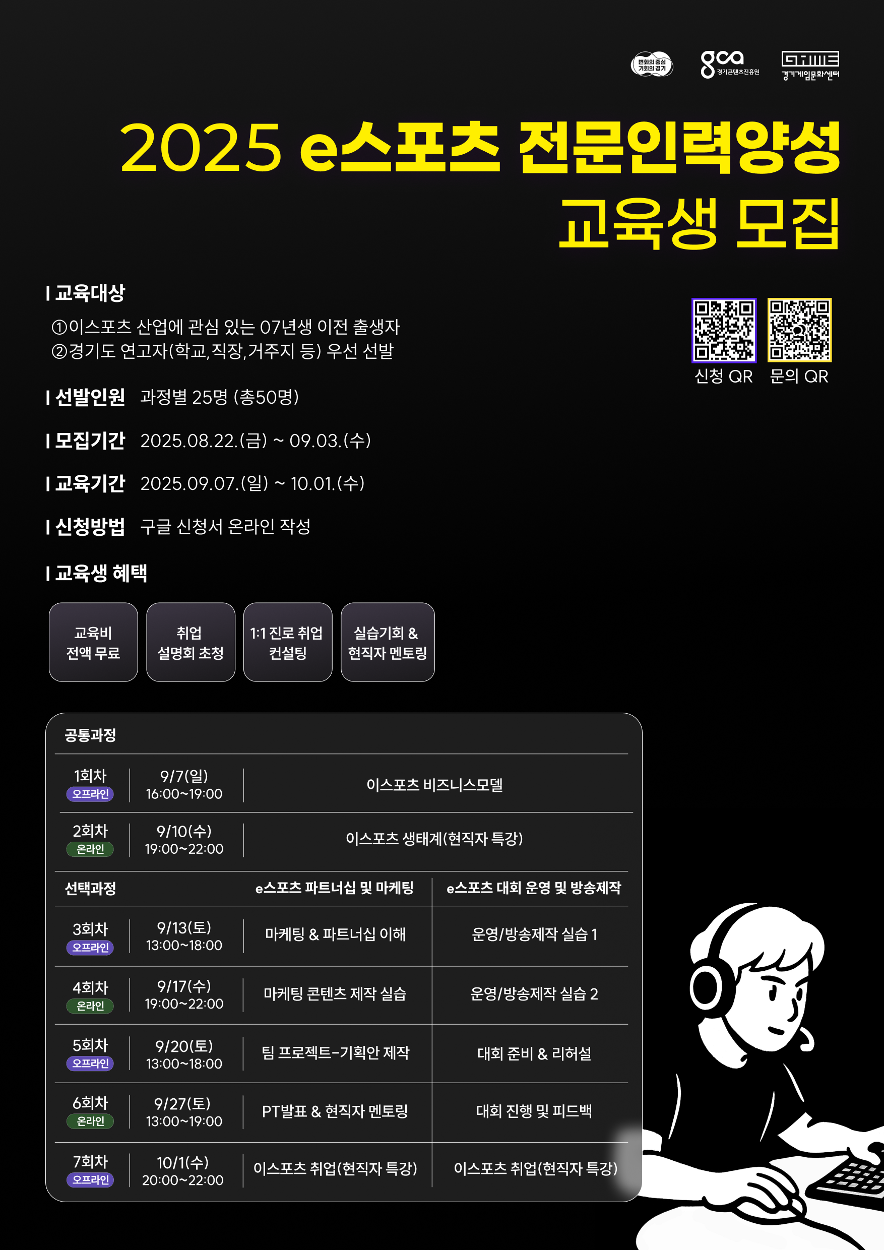 📣 2025 e스포츠 전문인력양성 교육생 모집