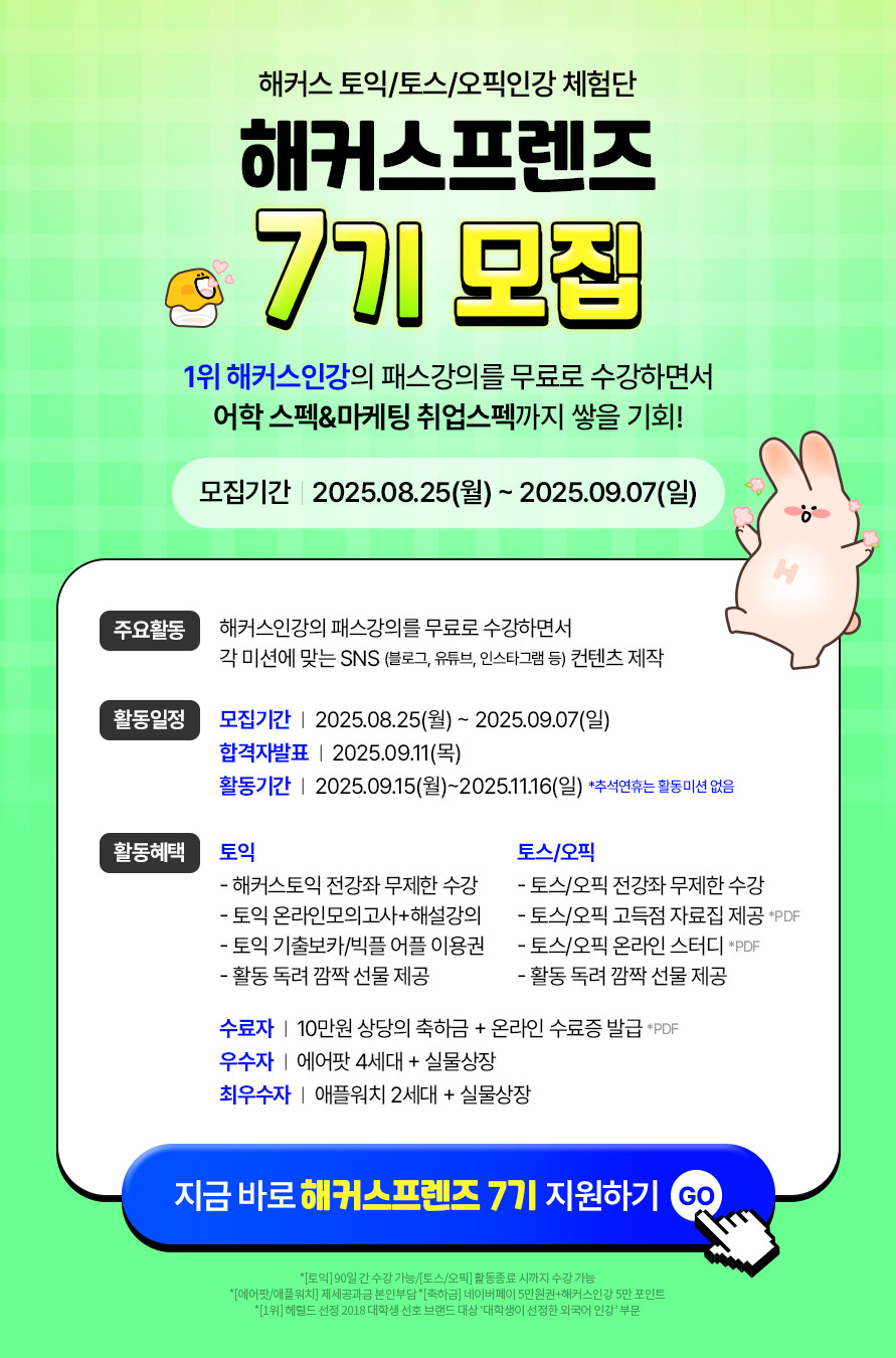 해커스프렌즈 7기 모집 페이지에서 [지원하기] 버튼 클릭!