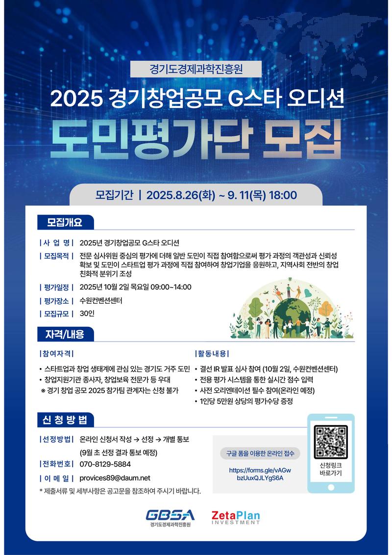 2025 경기창업공모 G스타 오디션 도민평가단 모집 공고(~9/11까지) – 제타플랜인베스트
