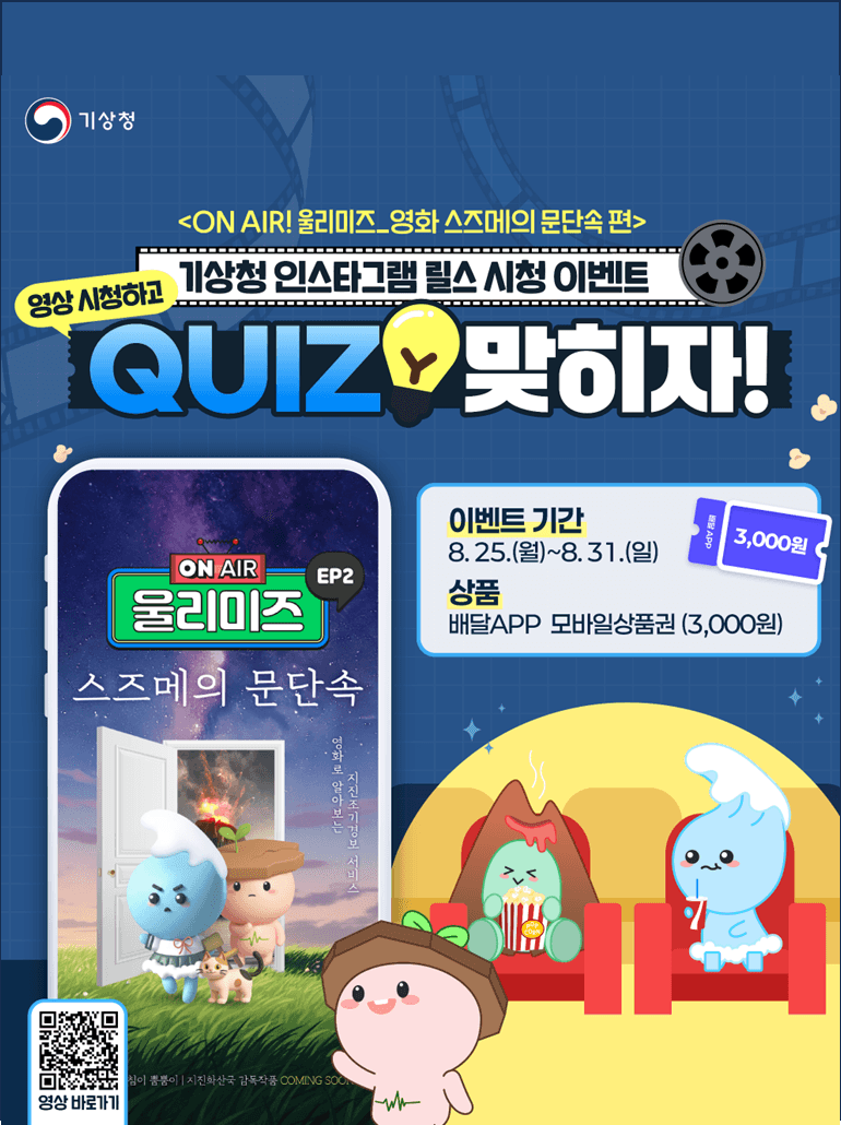 인스타그램 기상청 채널에 업로드 된 <ON AIR! 울리미즈-영화 스즈메의 문단속 편>