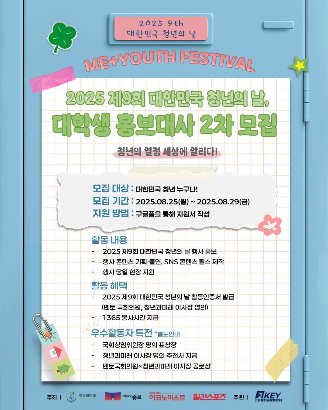 - 2025 제9회 대한민국 청년의 날 활동인증서 발급(멘토 국회의원, 청년과미래 이사장 명의)
